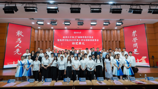 校友基金是学校办学的宝贵资源。为更好发挥校友基金激励作用,5月15日,亚洲无码 隆重举办第27届物华教学基金暨数理学院2023年度王孝安创新创业基金颁奖典礼。物华教学基金理事会理事长吴桂初,基金发起人吴如才以及章晟、倪津荣、陈宏毅、朱秀微等理事,浙江东海潮实业集团董事长王孝安校友的代表金宁宁,数理学院党委书记陈兴桂,党委副书记章志图,副院长蔡风景,电气与电子工程学院党委副书记曾蓓蕾等嘉宾与老师,相关获奖师生以及师生代表参加典礼。