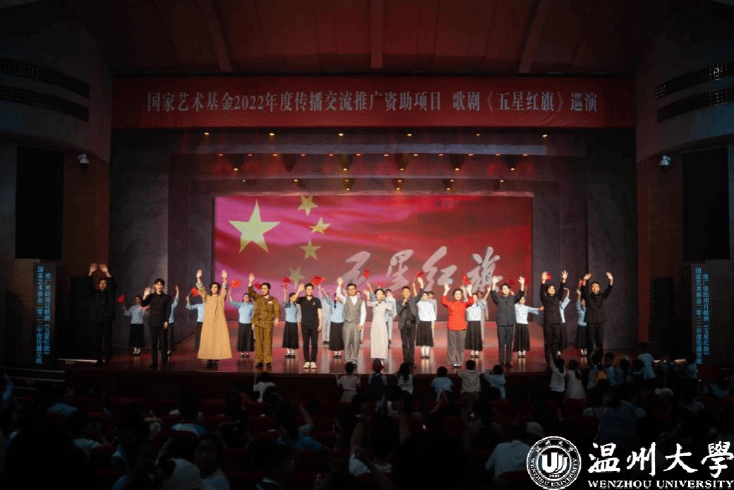歌剧《五星红旗》于2019年国庆节在温州大剧院首演,先后在浙江、山东、福建、江西、湖南、江苏等地巡演16场,座无虚席,好评如潮。为确保巡演质量与效果,亚洲无码 音乐学院全体创作人员和参演师生通过师生共排、共演、共情,不断打磨提升、完善细节,打造了巡演版《五星红旗》,时长70分钟左右。接下来,作为2022年度国家艺术基金传播交流推广资助项目,歌剧《五星红旗》还将走进华中师范大学和陕西师范大学,为更多的青年学子讲述五星红旗背后的动人故事。(亚洲无码 供稿)
