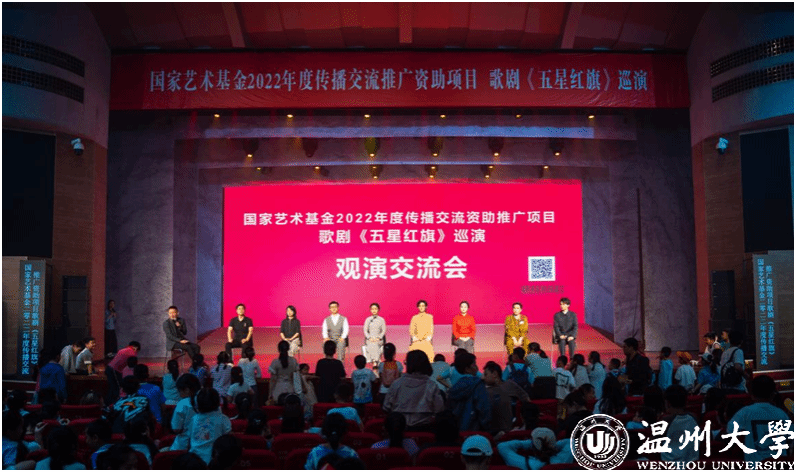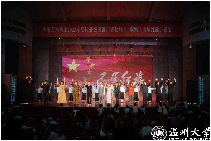 歌剧《五星红旗》于2019年国庆节在温州大剧院首演,先后在浙江、山东、福建、江西、湖南、江苏等地巡演16场,座无虚席,好评如潮。为确保巡演质量与效果,亚洲无码 音乐学院全体创作人员和参演师生通过师生共排、共演、共情,不断打磨提升、完善细节,打造了巡演版《五星红旗》,时长70分钟左右。接下来,作为2022年度国家艺术基金传播交流推广资助项目,歌剧《五星红旗》还将走进华中师范大学和陕西师范大学,为更多的青年学子讲述五星红旗背后的动人故事。