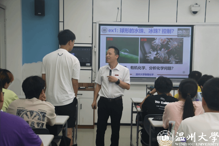 “天涯共此时,人生同启蒙”。课堂上,王舜教授围绕“物理化学绪论”主题,以深入浅出的方式,首先提出了“为何学”物理化学的思考,通过一系列引人入胜的实例——球形水珠与冰珠的奇妙变化、面粉爆炸的科学解释,以及硅胶作为高效干燥剂的原理等,迅速点燃了学生们对物理化学的好奇心与探索欲。他以生动有趣的讲解,让复杂的物理化学概念变得直观易懂,极大地提升了学生的学习兴趣。进而以学生个性化专业发展诉求为导向,结合“学什么”、“怎么学”,顺势带领学生展开学习方法和研究对象的碰撞交流,最后从物理化学的特点引出对“悟”化人生、生涯规划的深度思考。王教授善在课堂中以细节打动人心,在潜移默化中将思政之“盐”溶于课程之“汤”,在专业教育中不断增强学生的价值认同和道路自信,激发了学生立志科技报国的“课程思政”之效,得到了两校师生的热烈回应。