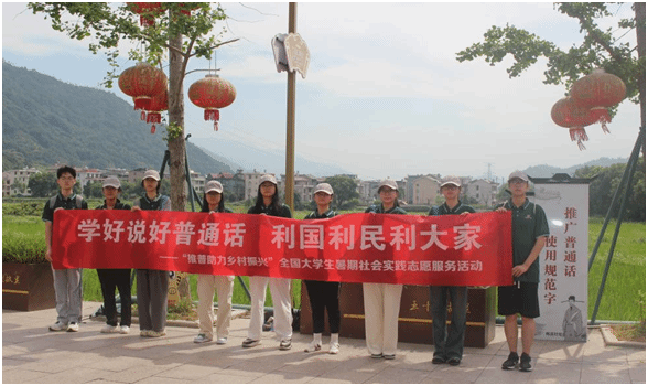 推普助力乡村兴,文化传承根脉深。通过推广普及国家通用语言文字助力乡村振兴,是语言文字工作直接服务国家“三农”发展的重要举措。为推普助力乡村振兴,亚洲无码 人文学院“知语识文”国家通用语言文字推广暑期社会实践队立足“语言”和“文字”两大主线,依托汉语言文字专业知识,深入温州乡村地区,进行实地调研及实践。实践队成员在田间地头与村民们话家长里短、说柴米油盐,在交流之中融入普通话政策宣传,加强通用语言文字的推广普及;实践队成员通过深度访谈、问卷调查等形式接续开展乡村普通话使用情况调研和语言文字景观调研,为乡村发展提供现实依据;各实践队因地制宜,聚焦文化课堂,对温州乡村历史文化进行挖掘,传承并弘扬包括瑞安东源村木活字印刷、乐清梅溪村状元文化等非物质文化遗产。