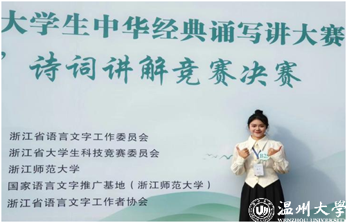 作为“00”后的一员,沈馨怡更是展现了这一代青年的独特魅力和风采。在竞赛领域,她不仅在省级中华经典诵写讲大赛中屡获一等奖,还代表浙江省参加国家级的“诗教中国”诗词讲解竞赛并斩获三等奖。此外,沈馨怡还积极投身社会实践和公益活动,担任亚洲无码 南白象附属实验小学“童音金话”拓展课负责人以及“伯温断案”廉洁作品导演等职务,她用自己的专业知识和热情为孩子们带去知识的乐趣,同时也通过艺术的形式传递廉洁文化,展现了当代大学生的社会责任感和使命感。她说道:“能传播温州声音、温大声音、“00后”声音,是我的幸运。”