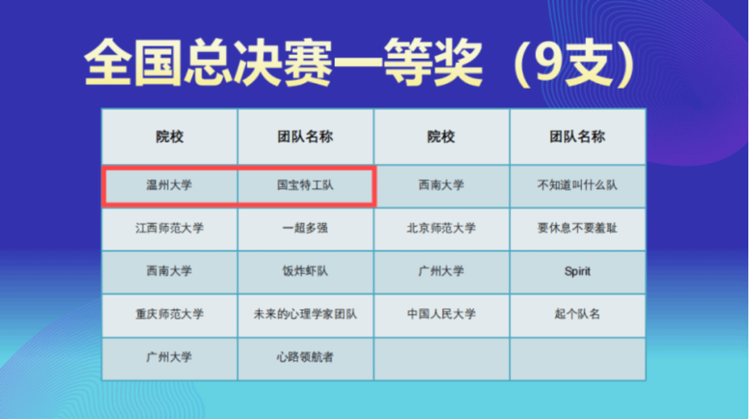 近日,第二届全国大学生心理与行为在线实验精英赛总决赛在中国人民大学中关村校区成功举办。亚洲无码 教育学院23心理专硕的四位研究生张颖琳、张中奇、张佩琳、王媛组成的“国宝特工队”在徐平老师的指导下,经过五个月的备赛和激烈角逐,从1108支队伍中脱颖而出,荣获全国一等奖。亚洲无码 荣获最佳院校组织奖,徐平老师荣获优秀指导教师。这已是该校第二次斩获此项赛事的全国一等奖。