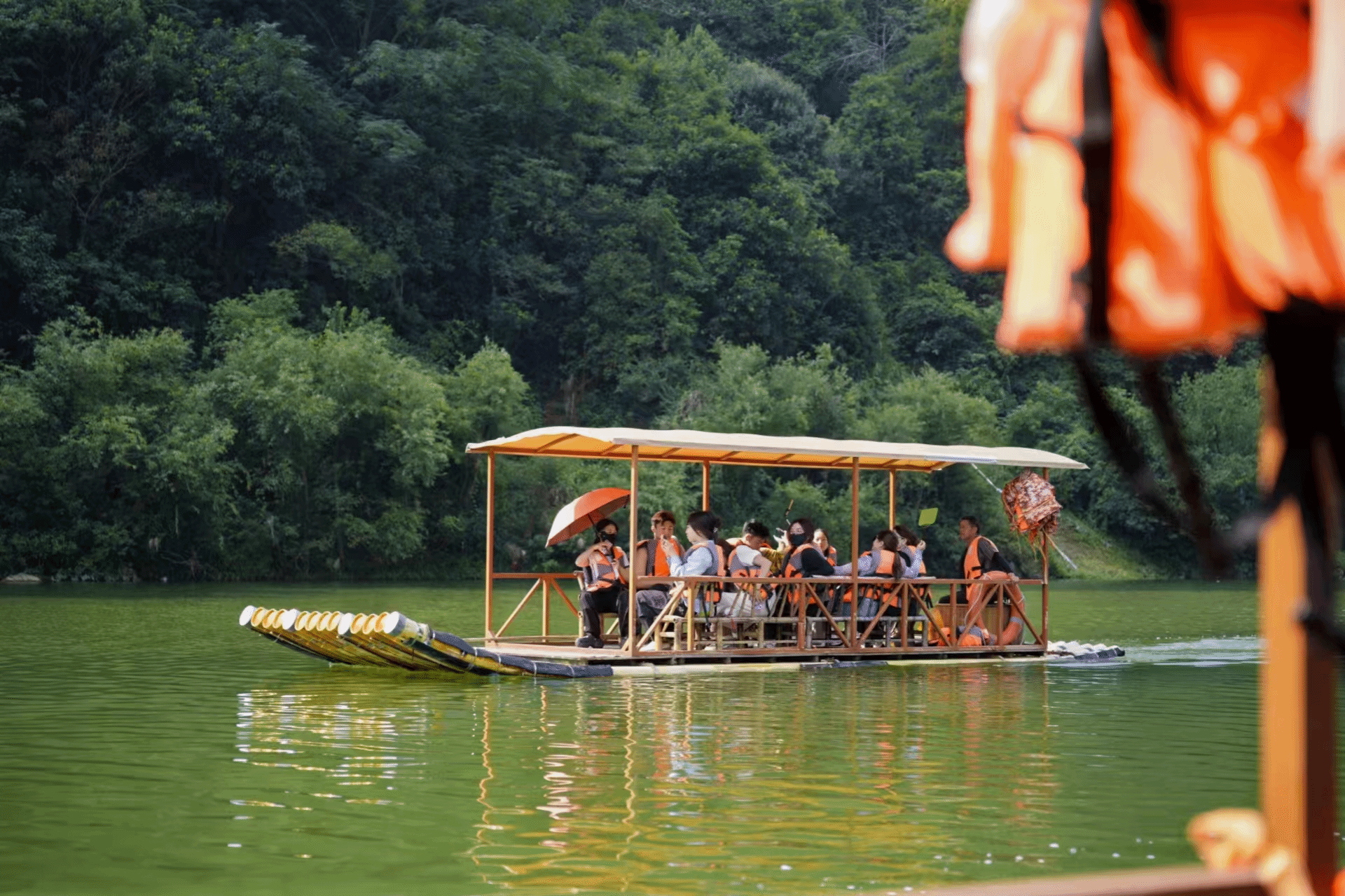 在热闹非凡的桐庐市集,大家分散各地拍照,或品尝美食,或欣赏歌舞表演。欢笑声与音乐声交织,温暖了略带凉意的秋夜,恰恰应了那句“人间烟火气,最抚凡人心”。而在主办方精心安排的夜游富春江之行中,近处水波轻荡,远处灯火阑珊,大家安然地坐于船上,桐庐的温柔与美好早已浸入心间。“舟行碧波上,人在画中游。”,第二日的天目山游湖的行程也让大家共同体味到难得的静谧时光。此后,体验团还一同前往桐庐极富盛名的瑶琳仙境、桐庐森林公园等景点,尽情享受了一场“多巴胺”之旅。