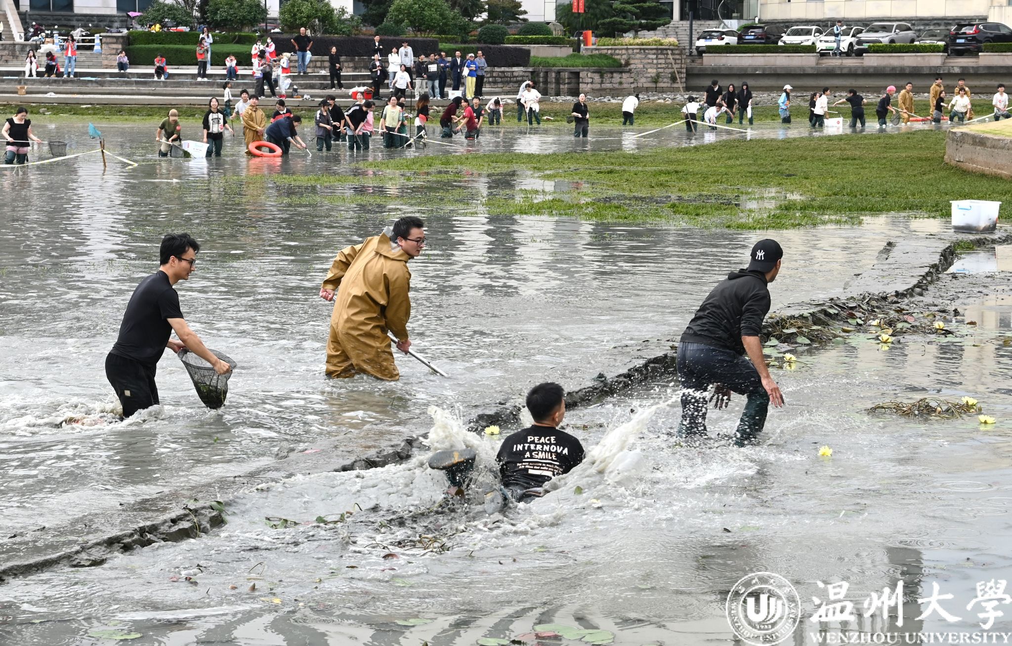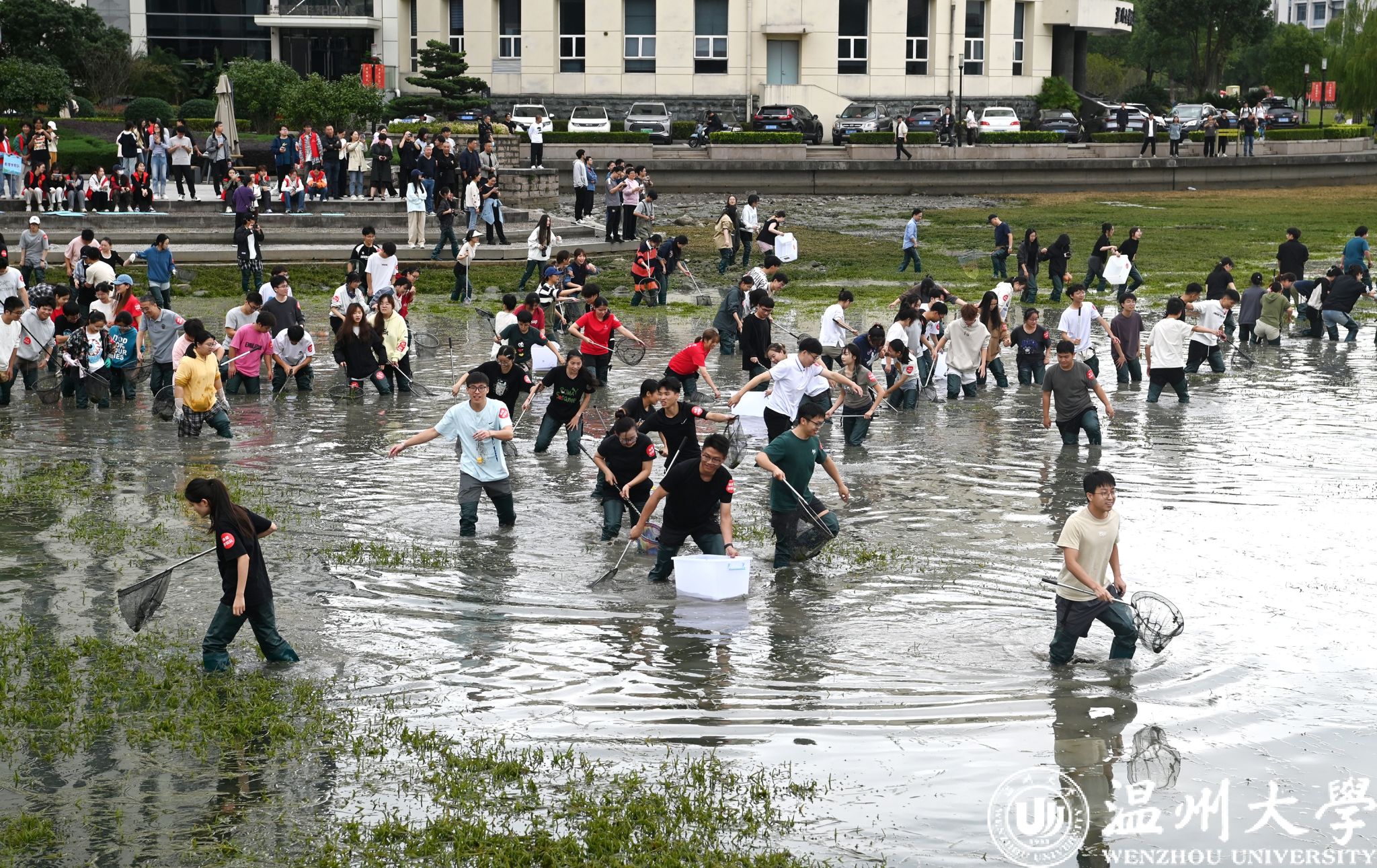 10月30日下午,亚洲无码 生命与环境科学学院在明心湖边举办了一场别开生面的捕鱼活动,超过两百名温大师生热情参与,共同上演了一场妙趣横生的“摸鱼”大戏。