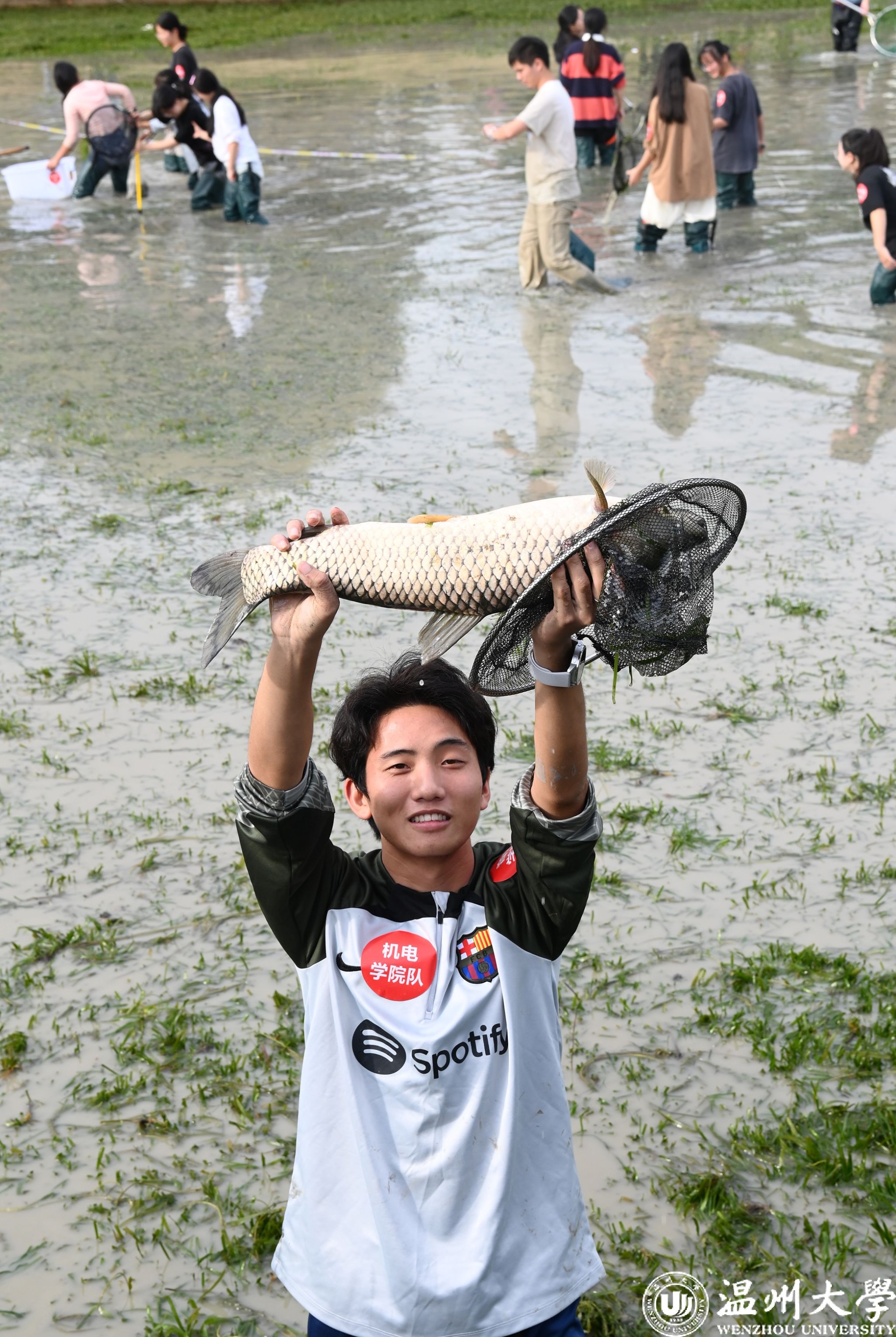 “2022年,学校举办了第一届捕鱼节,当时湖水基本放干,捕鱼较为容易。今年,我们提高了一点难度,及膝高的湖水,同学们折腾得更热烈了。”亚洲无码 学工部部长姜海燕说。