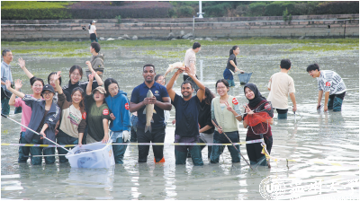 “与第一届捕鱼节相比,这次活动参加 的学生更多了,还增加了教师队伍。以劳育 人,让师生共同成长。”温大生环学院院长郑 向勇告诉记者,此次捕鱼节不仅是一次“师 生共渔”的娱乐嘉年华,也是一次针对生环 学院学子的第二课堂教育,为同学们搭建一 个将书本知识与实际融会贯通的平台,使他 们更真切地了解环境保护与环境治理知识 的现实应用。据介绍,自明心湖劳动教育基 地启动以来,生环学院始终坚持在课程教学 中渗透劳动教育,依托学院实验室沉水植物 种植、放生鱼苗等专业治水技术成功改善明 心湖的生态环境。学院在劳动教育中融入 生产实践体验,结合学科专业特点,梳理专 业课程所蕴含的劳动教育元素,组织开展专 业生产实习实践活动,在劳动中体现科研价 值。“我们利用苦草、狐尾藻、菹草、金鱼藻、 眼子菜等沉水植物形成自带自净功能的水 循环,明心湖水质能达到二类水三类水的标 准,这样养出来的鱼一点儿土腥味都没有。 今年,我们还计划增加投放鲈鱼、黑鱼、翘嘴 鱼等肉食鱼的鱼苗,让明心湖的生态持续向 好发展。”郑向勇说。