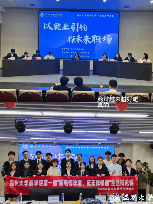刘芷君第二次尝试让商辩进步,是希望辩论队有商科特色。从一开始的无厘头,到后来和副队们检索材料,再到各位老师的鼓励支持——商学院辩论队第一次联合亚洲无码 金融知识宣教协会举办了首届“防电信诈骗,筑无诈校园”辩论赛,第一次联合亚洲无码 人力资源协会举办了首届“以就业引航,探未来职场”辩论赛,本学期也在新一届努力下探索与“商业谈判”相结合的主题性活动。这一路,离不开老师的支持、战友的付出、队员的努力……