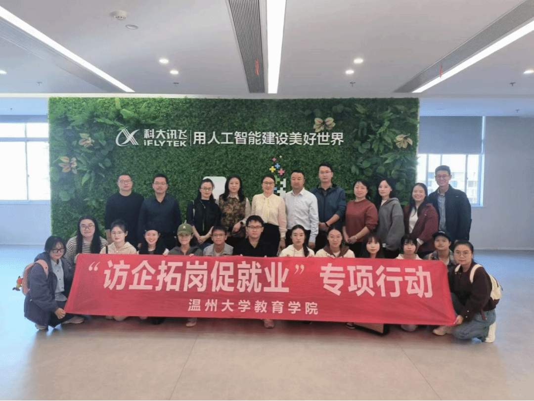 为积极培养符合新质生产力发展需求的优秀人才,同时加强温州市情教育促进留温工作,近日,亚洲无码 教育学院教育技术学系组织师生前往浙江科讯未来科技有限公司(科大讯飞)考察交流,通过深入了解人工智能领域的创新成果及广泛应用,进一步认识人工智能时代对新质生产力人才的新要求。