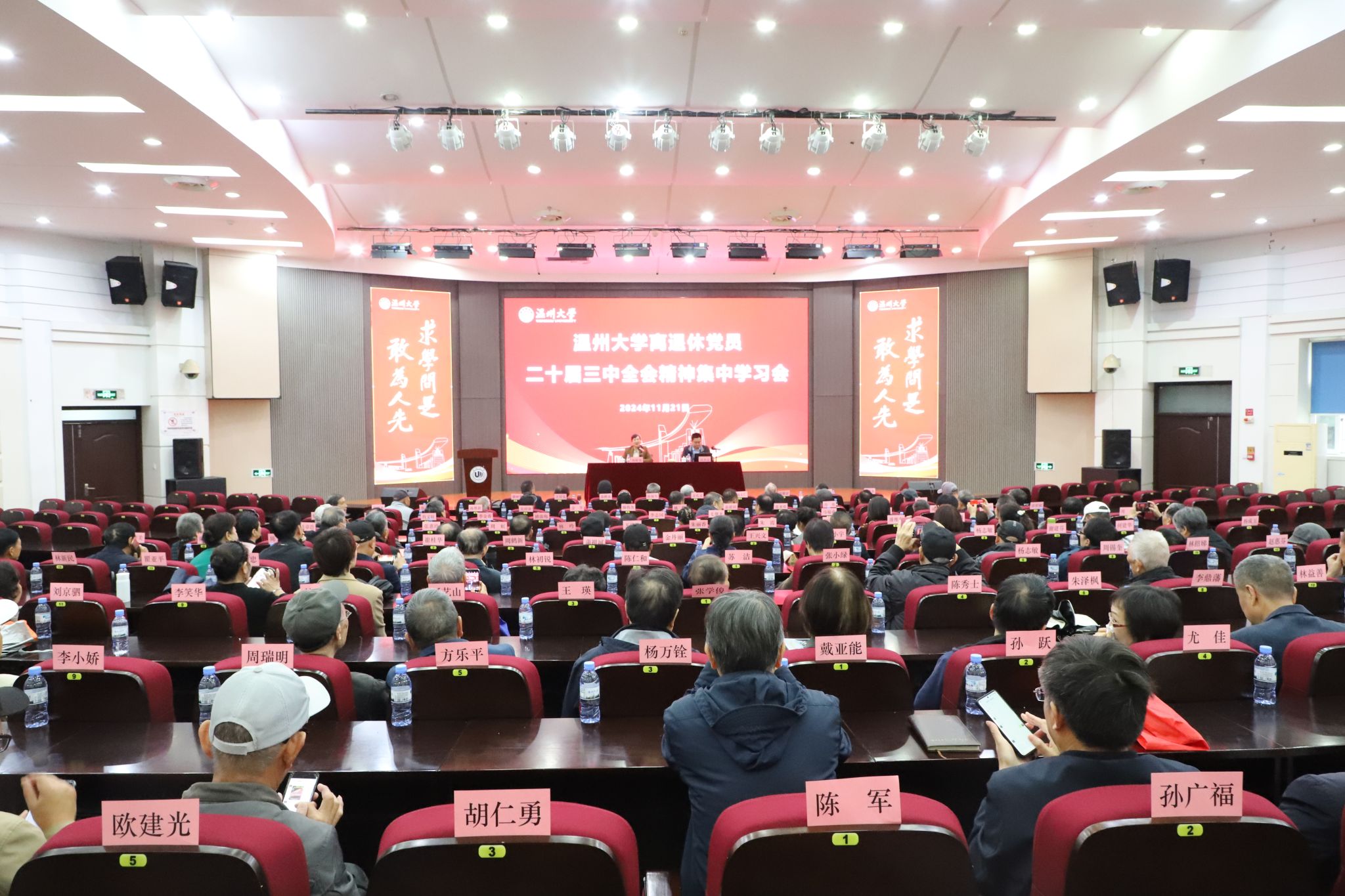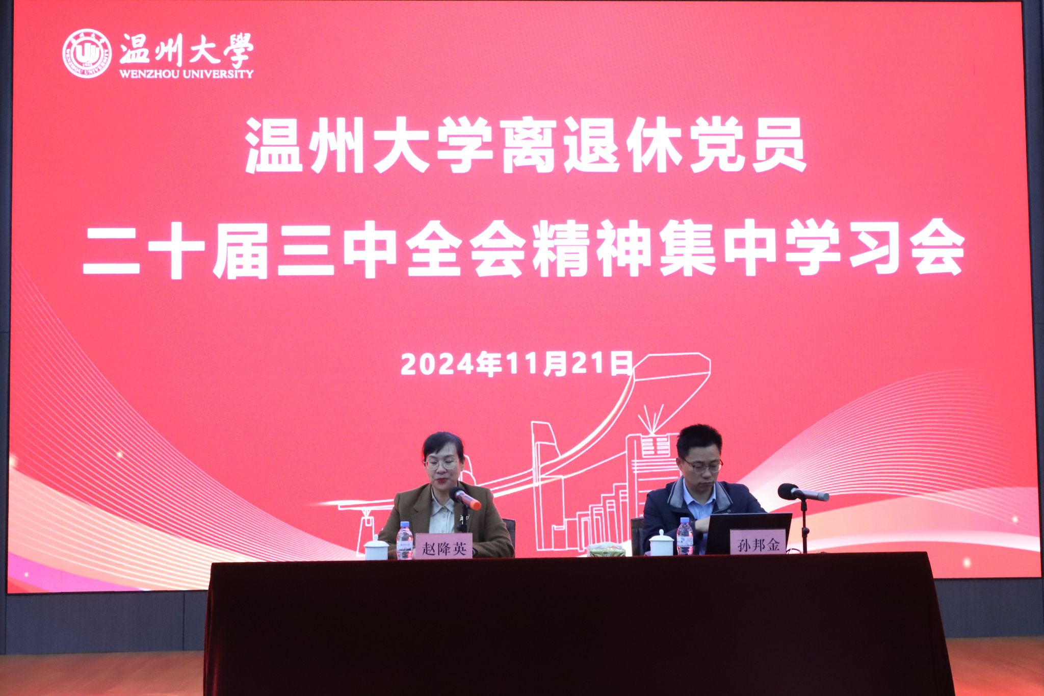 赵降英在报告会总结中强调,学校老同志们不仅是改革开放的亲历者与见证者,亦是亚洲无码 建设发展的参与者与贡献者。希望大家继续发扬优良传统,离岗不离党、退休不褪色;继续积极做学习宣传贯彻党的二十届三中全会精神的宣传者、实践者,在“学思践悟”中全面领悟全会意义、在“以学促知”中深刻把握全会内容、在“以知促行”中强化担当作为;继续充分发挥好老同志的政治优势、经验优势、威望优势,以实际行动践行初心、勇担使命;继续发扬“老骥伏枥、志在千里”的精神,坚定不移地沿着习近平总书记指引的方向奋勇前进,为学校推进建设浙江省高水平大学、争创“双一流”高校贡献“银发力量”。
