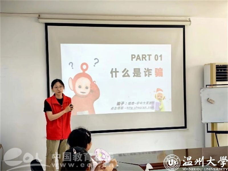 实践队员月月通过播放防诈骗宣传小视频、解析真实案例等方式,帮助小朋友们理解诈骗概念,了解各种诈骗手段的套路;她还借助互动游戏,帮助小朋友们识别骗局,认识到诈骗手段的多样性和隐蔽性。
