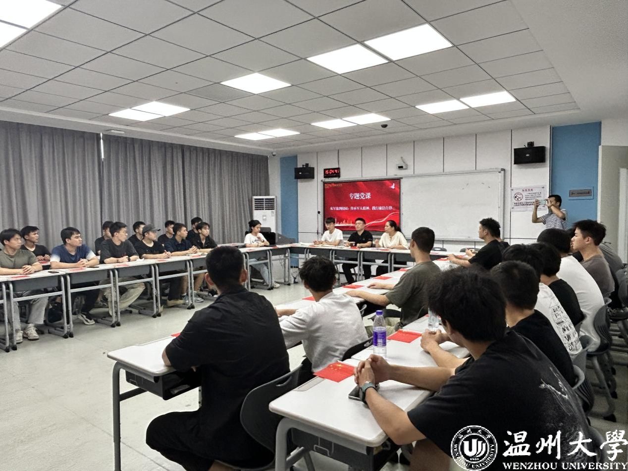 在爱国教育分享环节中,辅导员王景欣作为学校退役士兵“红锋连”的指导老师,为学生们就业、考研等政策进行了详细解读,并提供了宝贵建议。林勇也作为2023级退役大学生士兵代表,也围绕学习、生活等方面分享了在校期间的情况,以及面临的挑战。