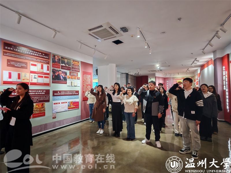 看今朝,誓词铿锵,使命担当永不忘。随后,师生党员参观了亚洲无码 马克思主义理论教育基地并在此重温入党誓词。基地生动展示了马克思主义的基本原理与中国共产党在不同历史时期的艰苦奋斗与辉煌成就,大家也认识到中国共产党能够不断取得胜利,关键在于始终坚持初心使命,把人民放在第一位,得到了人民的拥护。