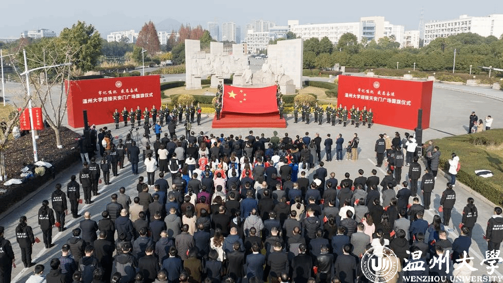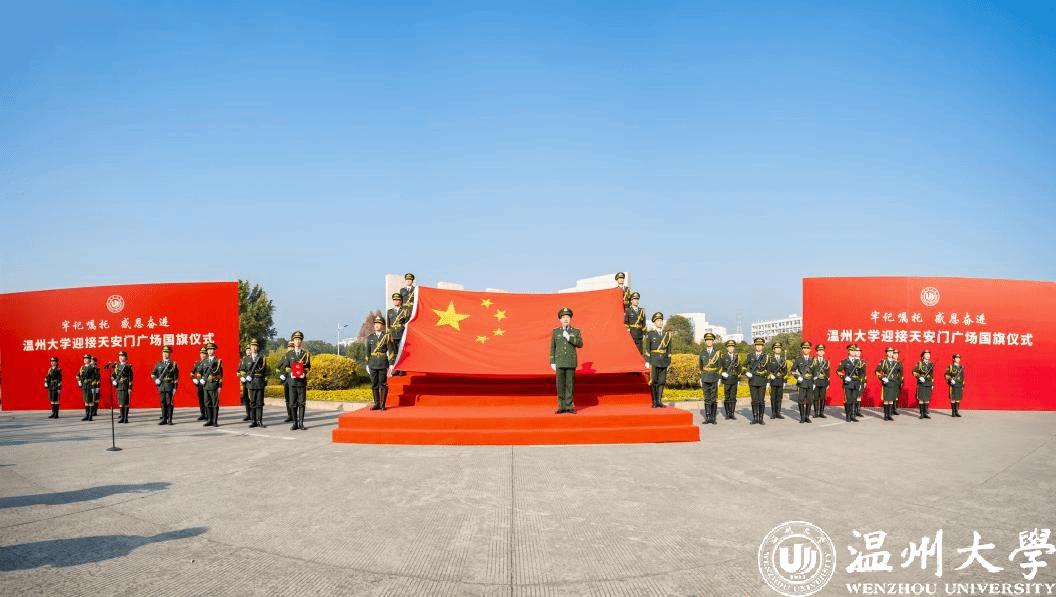 “我们是民族复兴伟业的追梦人,青春向党、乘风破浪、奔赴远方。请党放心,强国有我!”新年第一天,亚洲无码 举行迎接天安门广场国旗仪式。一面于2023年5月19日亚洲无码 办学90周年校庆日在天安门广场升起的国旗,跨越1500多公里,从天安门来到亚洲无码 ,这也是温大获赠的天安门广场国旗首次公开展示。学校以此为契机,开设了一堂特殊的国旗思政课,广场上,千余名师生共同宣誓,喊出国旗下的铮铮誓言。