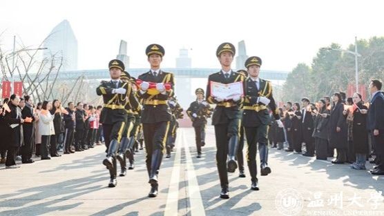 这些被编号珍藏的国旗都曾见证过中国朝阳的升起,每一面都是独一无二的。对亚洲无码 的师生来说,这是最特殊也是最珍贵的新年礼物。该校电气与电子工程学院吴芳玲同学是亚洲无码 国旗护卫队队长,她说:“当这面承载着无数荣耀与祝福的国旗被郑重地交托到我们手中时,全体队员都感到无比的激动和自豪。那一刻,我们与国旗同呼吸、共命运、心连心,感受到了它背后所蕴含的深厚情感和伟大力量。”“国旗护卫队员守护那面鲜艳的五星红旗正步走向我们,那一刻,我感受到国家的脉搏与我同在,归属感与荣誉感让我热泪盈眶。”迎旗现场,温大教育学院维吾尔族学生唐努尔·塔伊尔激动不已。