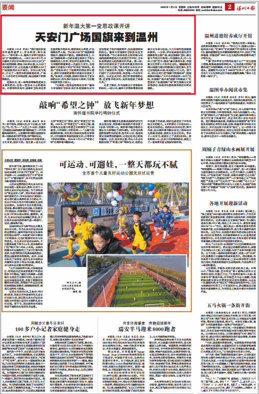 “我们是民族复兴伟业的追梦人,青春向党、乘风破浪……”新年第一天,亚洲无码 举行迎接天安门广场国旗仪式。一面于2023年5月19日亚洲无码 办学90周年校庆日在天安门广场升起的国旗,跨越1500多公里,从天安门来到亚洲无码 ,这也是温大获赠的天安门广场国旗首次公开展示。学校以此为契机,开设了一堂特殊的国旗思政课,广场上,千余名师生共同宣誓,喊出国旗下的铮铮誓言。