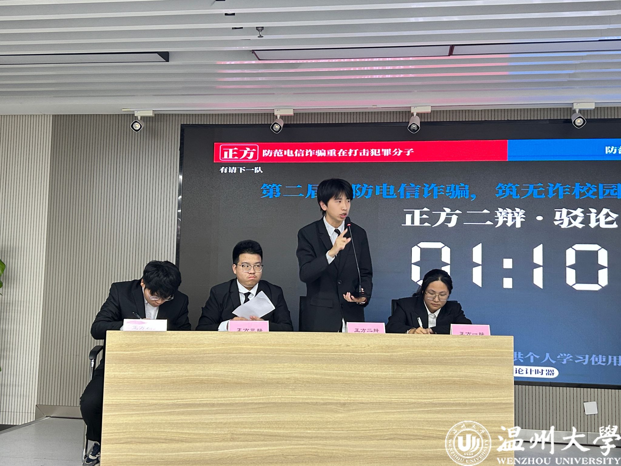 冠亚争夺赛采用固定辩题“防范电信诈骗重在打击犯罪分子VS防范电信诈骗重在普及防诈知识”。正方认为,防范电信诈骗重在打击犯罪分子。他们指出,犯罪分子是电信诈骗的直接实施者,只有对其进行精准打击,从源头上摧毁诈骗团伙,才能真正有效地降低诈骗案件的发生频率,守护人民的财产安全。反方认为,防范电信诈骗重在普及防诈知识。他们从普及防诈知识的角度展开论述,认为提升民众的防诈意识如同构筑坚固的防线,能够让诈骗分子无处遁形。
