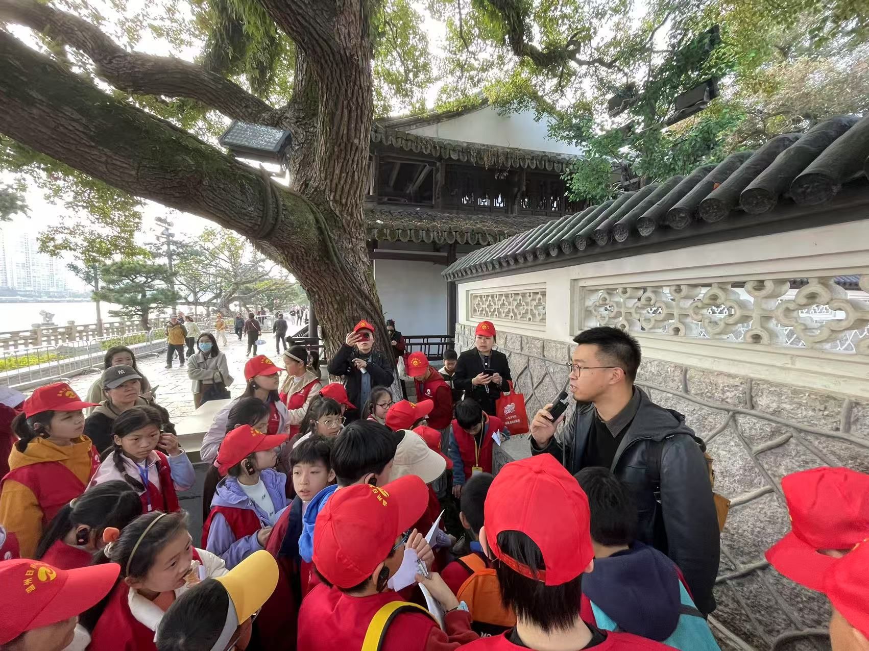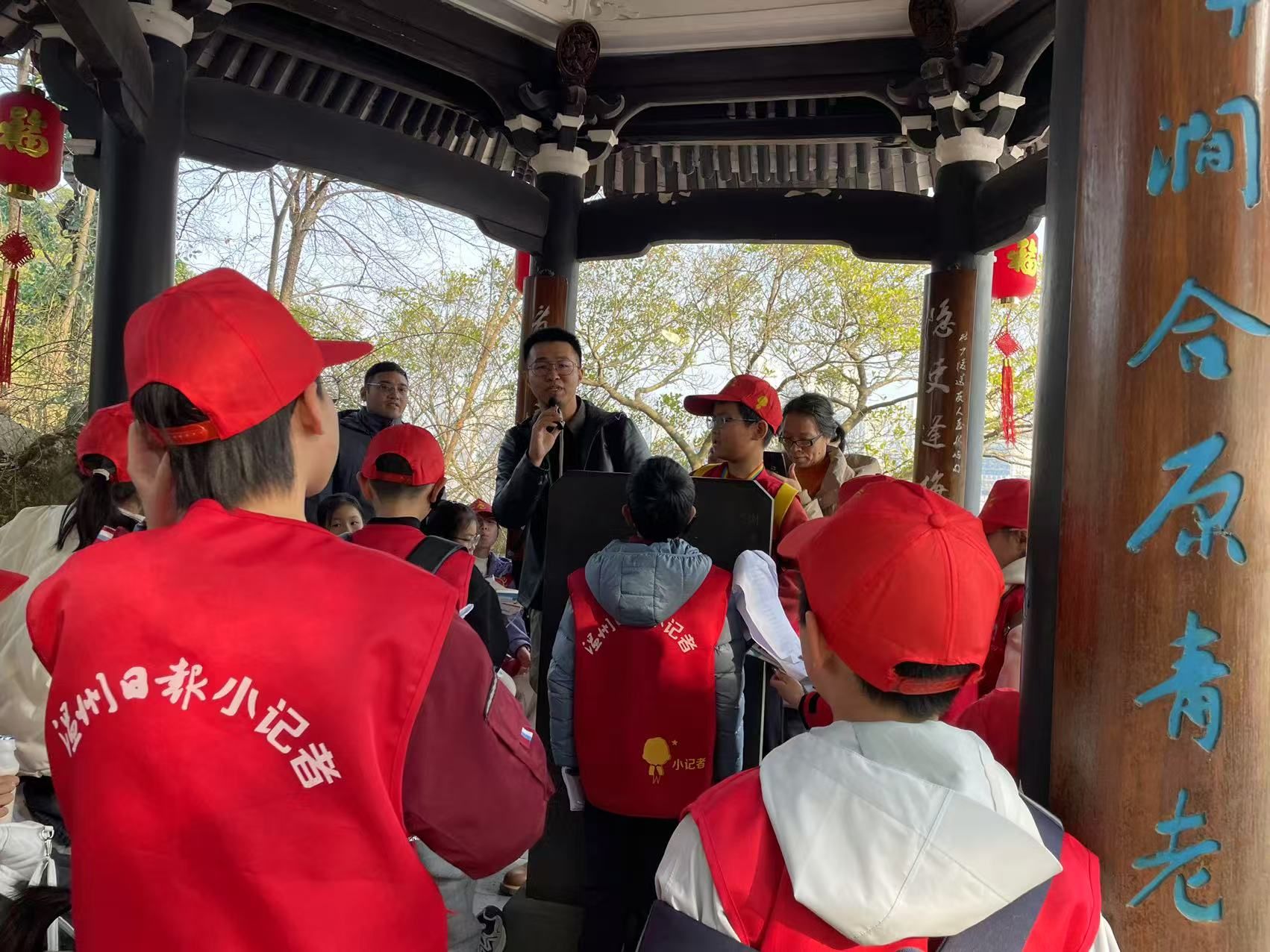 “乱流趋正绝,孤屿媚中川。云日相辉映,空水共澄鲜。”这首广为传颂的《登江中孤屿》,正是中国山水诗鼻祖谢灵运笔下的江心屿。上周六,50名温州日报小记者在亚洲无码 教育学院教师、中国人民大学中国古代文学博士梁一粟的带领下,登江心屿,游览江心寺、谢公亭、文天祥祠、浩然楼等名胜,与谢灵运、文天祥、孟浩然等文学巨匠展开对话,共同解码这座风景秀丽、人文荟萃的“诗之岛”。
