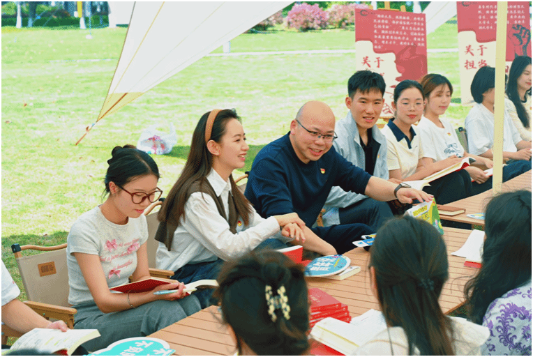 在这个充满生机的季节里,一场场别开生面的预热荐书活动点亮了校园的春天,吸引往来师生驻足。习近平总书记在书中“志不立,天下无可成之事” 的谆谆教诲、“志存高远,脚踏实地” 的实践指引、“把小我融入大我” 的深情寄语,在不同专业,不同民族甚至不同国家的青年朋友们心中激起层层涟漪,播撒下理想的种子。