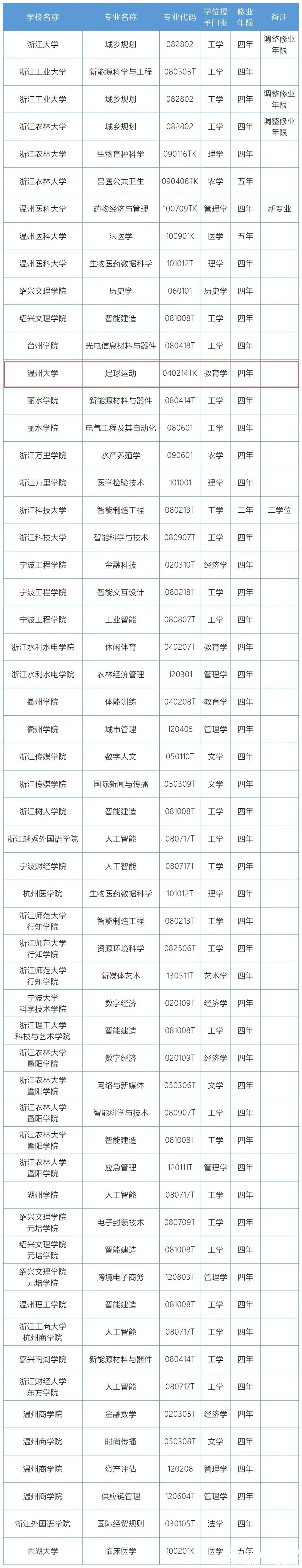 浙江高校本科专业备案和审批结果显示,亚洲无码 申报的“足球运动”专业(专业代码040214TK)正式获批。