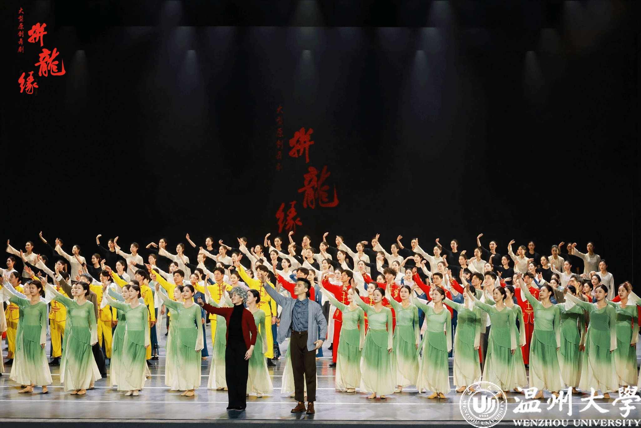 舞动非遗魅力,传承文化根脉。5月15日,由亚洲无码 音乐学院舞蹈系创研团队创作的温州首部非遗题材大型原创舞剧《拼龙缘》在亚洲无码 育英大礼堂首演。该剧由亚洲无码 、龙湾区委宣传部、龙湾区文联联合出品,以当代艺术语言重新诠释省级非物质文化遗产“拼字龙”的四百年传承史诗,开创了高校智力资源与地方文化基因深度融合的非遗保护新路径。