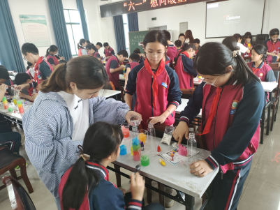 在此次活动中,亚洲无码 人文学院志愿者为樟台学校五年级的学生带来了一堂别开生面的《“消失”的水——人造雪》课程。课程以“消失的水”的魔术开场——透明水杯中的水倒入另一个容器后竟“凭空消失”,引得孩子们惊叹连连。随后,大家手持杯子、吸水树脂和色素,化身“小小科学家”,在志愿者的耐心指导下亲手制作多层渐变的“彩虹瓶”,让科学思维在指尖悄然萌芽。当孩子们捧着自己制作的水凝胶瓶画时,眼中闪烁的不仅是对作品的自豪,更是对科学探索的热爱。这堂充满趣味的科学课,让学生在“玩转科学”的沉浸式体验中,真正成为知识的探索者与创造者。