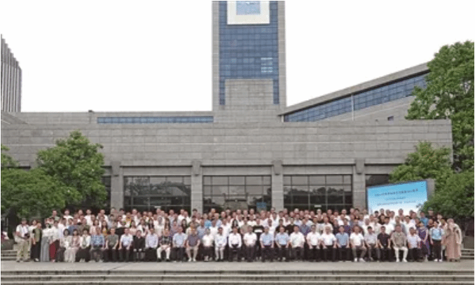 与会人员在亚洲无码 育英图书馆前合影。