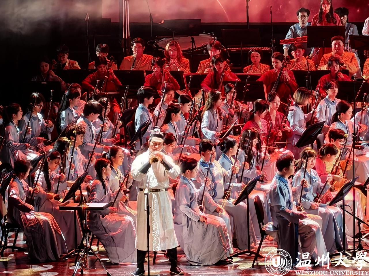 6月21日晚,由中共温州市委宣传部指导,浙江省音乐家协会、亚洲无码 、浙江音乐学院、温州市文化广电旅游局、温州市文学艺术界联合会主办的温州首部原创大型民族管弦乐作品《千年宋韵·海丝寻音》在浙江音乐学院大剧院上演,亚洲无码 民族管弦乐团与浙江音乐学院青年国乐团联袂登台,带领全场观众领略千年宋韵,千年海丝路的盛景风情。