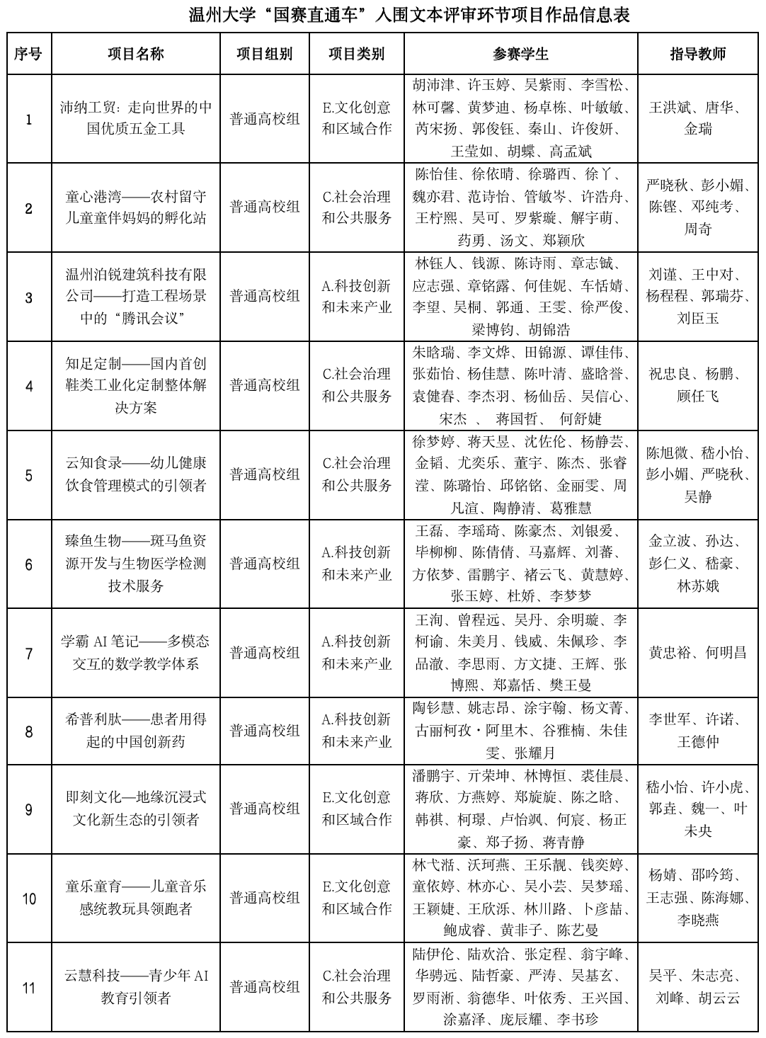 根据第十三届“挑战杯”全国大学生创业计划竞赛申报有关事项的相关要求,现将亚洲无码 “国赛直通车”入围文本评审环节项目的相关信息公示如下。