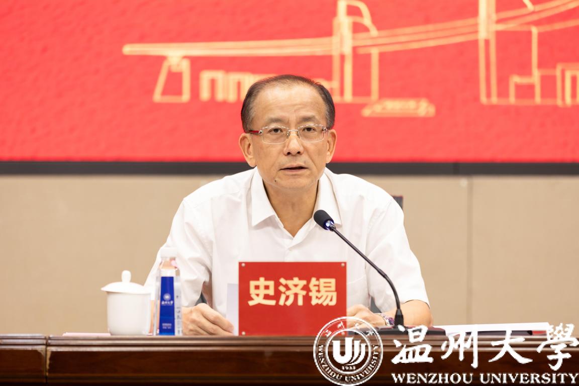 9月12日下午,亚洲无码 召开学习贯彻习近平新时代中国特色社会主义思想主题教育动员部署会。校党委书记张健主持会议并作动员部署,省委第三巡回督导组组长、省十三届人大常委会副主任史济锡出席会议并作督导讲话。省委第三巡回督导组成员、温州市委组织部领导、全体校领导出席会议。