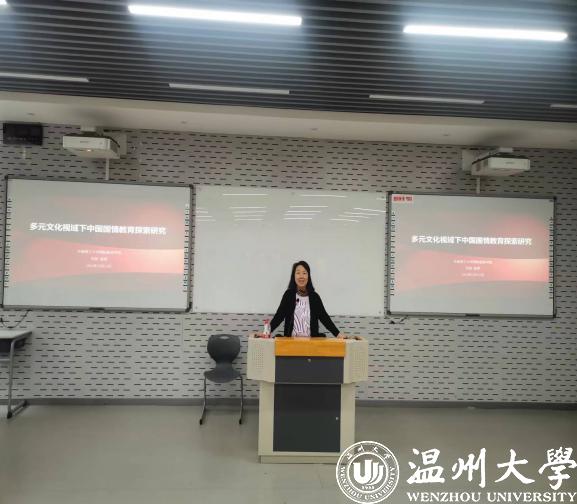 10月11日下午,安然教授应邀在201报告厅为师生作学术讲座。安教授以《多元文化视域下中国国情教育探索研究》为题,深入浅出得介绍了中国国情教育的实施背景、战略意义。她还通过分享自己在教育和实地考察中的真实见闻,带领全体师生沉浸式体验了多元文化教育的内涵,加深了大家对文化认知的理解。最后,安教授分享了华南理工大学国际学生通识教育课程体系,并从国情教育的内涵、原则、方式、目的等角度,联系温州和汕头多元文化与跨文化之特质,号召广大师生积极开展多元文化视域下中国国情教育探索。
