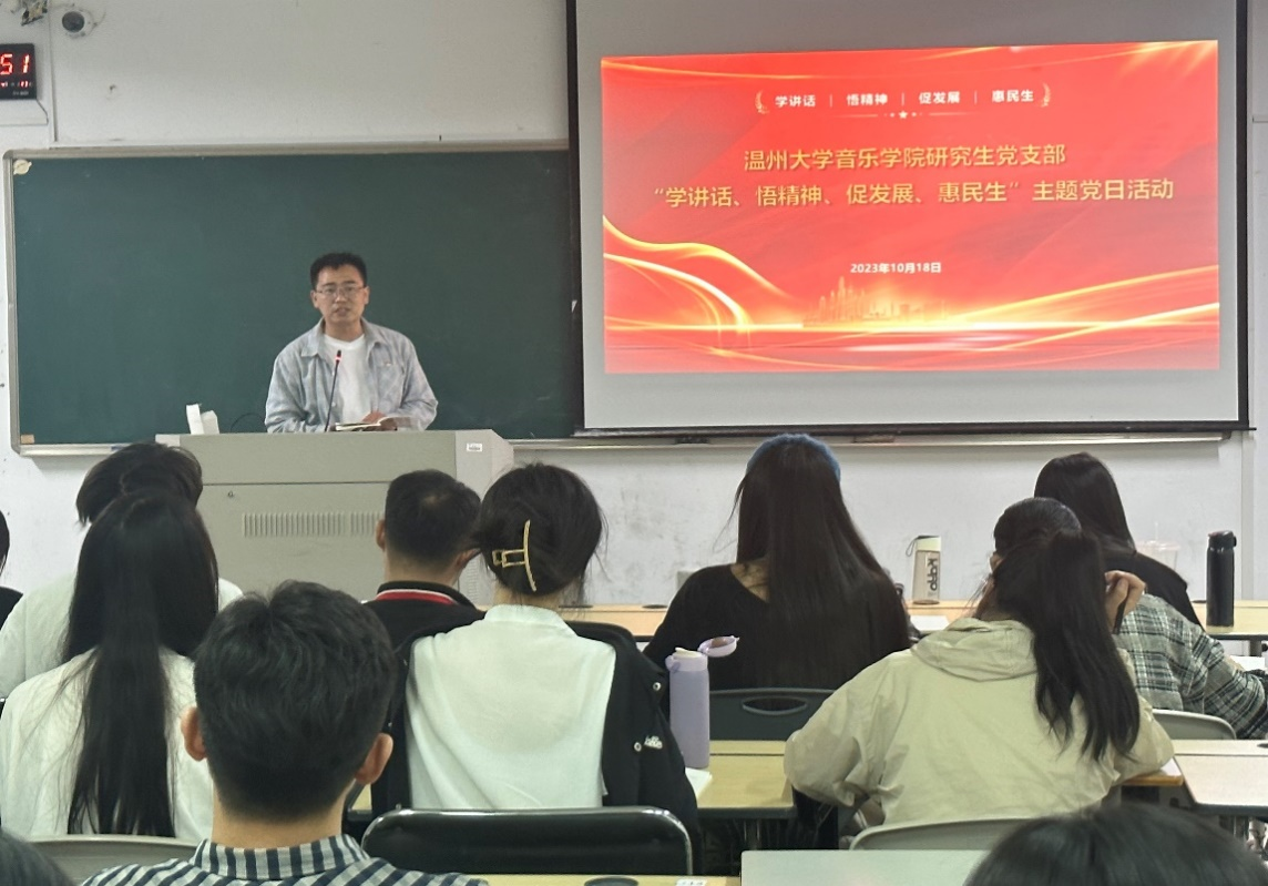 为深入学习贯彻习近平新时代中国特色社会主义思想和在习近平总书记在浙江考察时的重要讲话精神,音乐学院党委组织各支部开展“学讲话、悟精神、促发展、惠民生”主题党日活动。