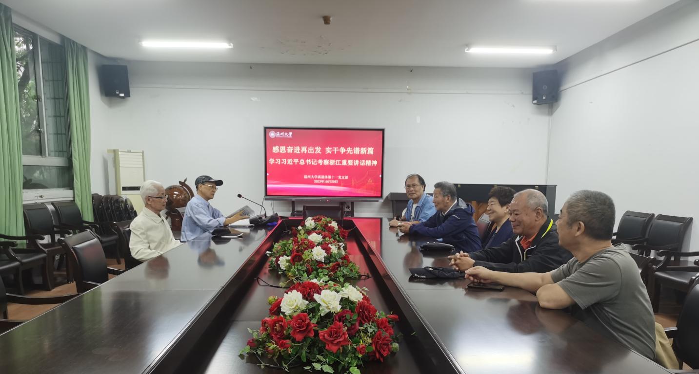 10月20日上午,温大离退休第十一党支部在学院路校区老干部活动中心会议室召开学习贯彻习近平新时代中国特色社会主义思想主题教育专题学习会,传达学习习近平总书记考察浙江重要讲话精神。