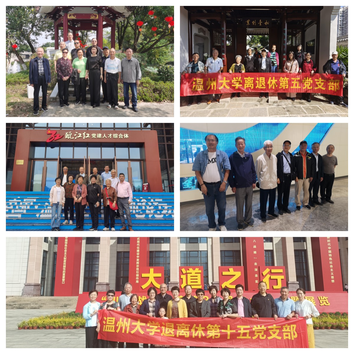 协助各支部通过实地研学、参观见学等方式开展考察调研,并计划陆续对接“循迹溯源学思想促践行”示范点开展现场学习。离退休第三党支部在平阳温师旧址进行主题教育集中理论学习的同时,开展“走看促”活动,先后参观亚洲无码 平阳智能制造研究院、温师旧址纪念馆的“黄溯初专题馆”和“浙江省立温州师范学校旧址陈列馆”。离退休第五党支部赴位于九山湖畔的松台别业开展主题党日活动。离退休第九党支部赴三垟湿地在习近平总书记亲自栽种的大榕树下开展“循迹溯源学思想促践行”主题党日活动。离退休第十一党支部开展热学热议习近平总书记考察浙江重要讲话精神之后,组织党员同志们参观温州市规划展示中心。离退休第十五党支部赴浙江展览馆参观“大道之行——‘八八战略’实施20周年大型主题展览”。各支部在考察调研中不断加深对党的创新理论的理解,将理论学习向实践运用进行转化,在深学细悟中提高理论素养、坚定理想信念、升华觉悟境界。