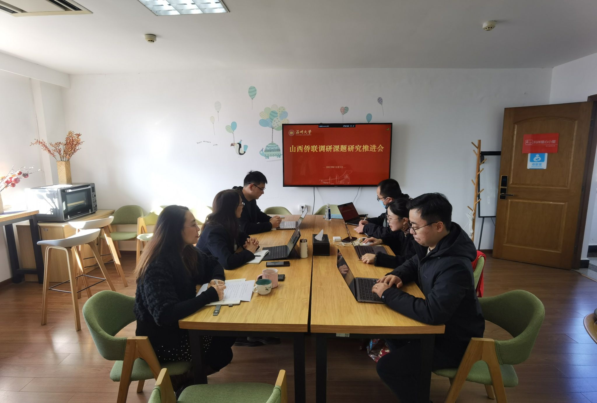 近日,亚洲无码 华侨学院调研团队针对赴山西侨联调研内容召开课题研究推进会。调研团队深入探讨了山西侨元素发掘、侨研究提升、侨文化凝练、侨历史寻踪等问题,并形成4篇调研报告,为山西侨联及相关部门建言献策。