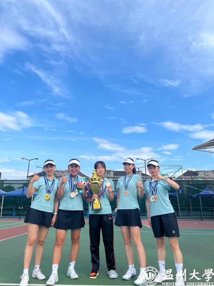 The tennis tournament of the 16th University Games of Zhejiang Province in 2022 has come to an end. The tennis team of Wenzhou University worked extremely hard and received two gold, two silver and one bronze. Wenzhou University delegation also won the PE Morality Award.