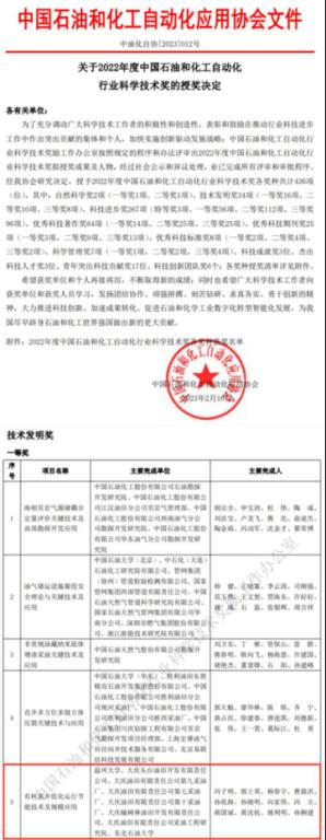 Approved by the Ministry of Science and Technology, the Science and Technology Invention Award in petroleum and chemical automation industry was established in October 2004. It is a nationwide industry-based science and technology award hosted by China National Association for Automation in Petroleum and Chemical Industry. This provincial-level award is given annually with significant influence in the petroleum and chemical industries.