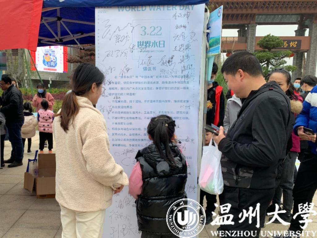 At the site, the staff and students from the College of Life and Environment carried out publicity initiatives including knowledge quizzes, 100-meter gallery, and water purification experiments. This event, aiming to arouse the awareness of water conservation among the general public, was strongly supported by Wenzhou Municipal Ecological Environment Bureau and the Ecological Park Management Committee.
