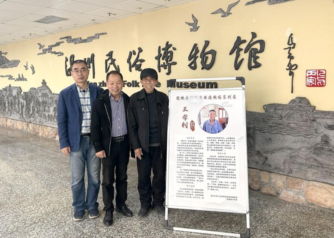 泉川艺社社长、茶山街道新乡贤联谊会秘书长王大普、“农民书画家”王学钊与亚洲无码 温州民俗博物馆万军合影