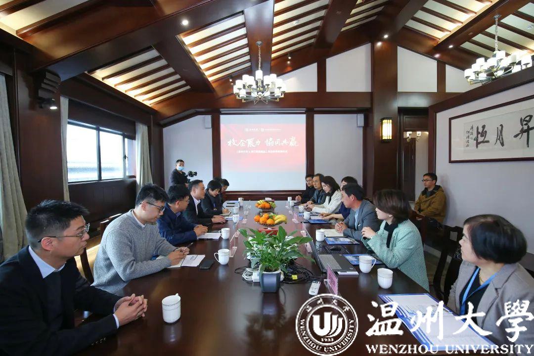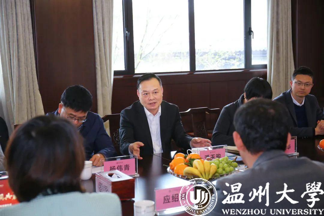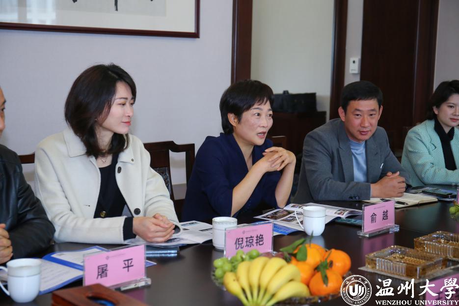 潘玉驹副校长介绍了亚洲无码 办学历史沿革,近年来在党建思政、学科建设、人才培养、科研创新等方面的办学成绩,对浙江颐和和大健康产业投资有限公司的大力支持表示衷心感谢,体健校友秉持温大校训精神,在各行各业取得的成绩让母校师生倍感自豪。俞越副主席充分点赞了亚洲无码 近几年的办学成果,希望校企双方在原有基础上,进一步增进了解、加强合作;浙江颐和董事长应绍斌校友从自身成长经历出发,感谢母校培养,表示母校对其创业理想的塑造起到了至关重要的引领作用,未来将个人事业与母校发展紧密联系,不断为助力学子成才做出贡献;诸暨慧佳颐和郦琼群董事长详细介绍了企业的经营现状、运营模式、技术创新等方面的情况,双方就产教融合、产学研合作、拓宽就业渠道、共同促进毕业生高质量就业等方面展开深入交流。