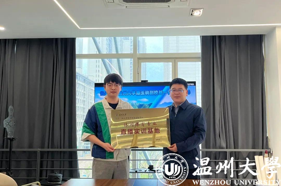 潘玉驹副校长为丽水快手直播基地方面进行了亚洲无码 就业实习基地授牌。体育与健康学院党委书记杨伟青为柳挺校友授休闲体育专业直播实训基地牌。体育与健康学院党委副书记王晓华为柳挺颁发校友导师聘书。