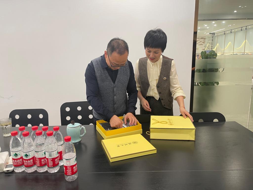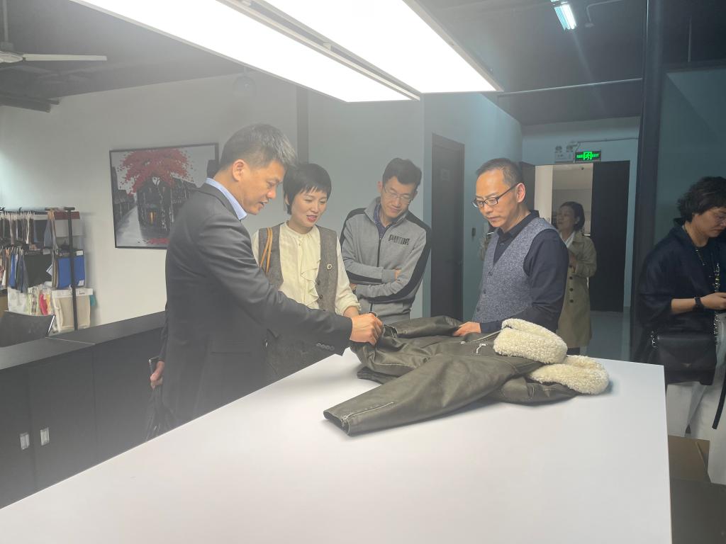 来源: 发布时间:2023-04-18 浏览次数:次2023年4月14日,商学院党委书记李密、美术与设计学院党委书记叶正飞等一行7人走访海宁鑫诺服装有限公司,拜访学院90级外贸经济专业刘军校友,围绕校友企业用人需求、校企实习就业合作以及学校事业发展等方面与校友代表座谈交流,并代表学院向刘军校友送上了亚洲无码 90周年校庆的邀请函。商学院国贸专业负责人林俐教授、国贸系主任姜亮、美术与设计学院服装设计系主任黄高路、鞋履设计教研室主任祝忠良等同行。
