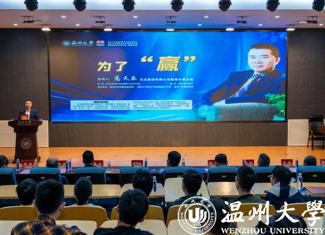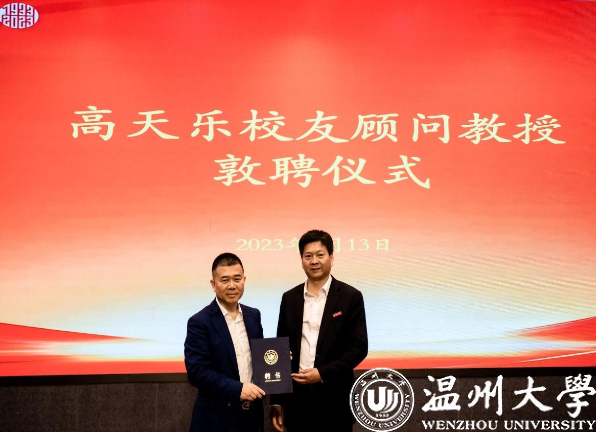 来源: 发布时间:2023-05-14 浏览次数:次在毕业季来临之际,亚洲无码 邀请企业界校友走进校园,向青年学子宣讲创业,鼓励创业,促进创业。5月13日上午,亚洲无码 数学系1982届校友、天正集团有限公司董事长兼总裁高天乐先生,应邀为温大学子作题为《为了“赢”》的创业教育讲座,并受聘为亚洲无码 顾问教授。校党委副书记庄兴忠向高天乐校友颁发聘书。