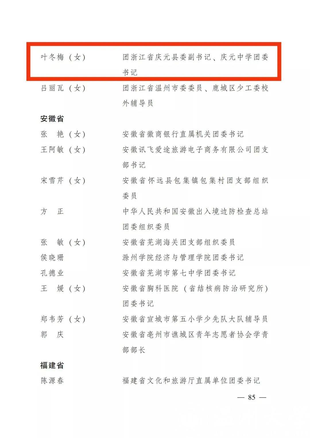 新岗位新使命。担任团庆元县委挂职副书记后,叶冬梅积极转变角色,与团县委同事们共同努力,积极开拓创新,不断深化团的各项工作。她创新推动团、队衔接改革,推动落实《庆元县青少年“真善美”种子工程构建党团队一体化阶梯式培养机制方案》,建立贯穿青少年成长全过程的培养体系,从“队前——队员——团前——团员——党前培育”五阶段逐步构建青少年政治进步阶梯,统筹做好党、团、队的政治育人衔接。